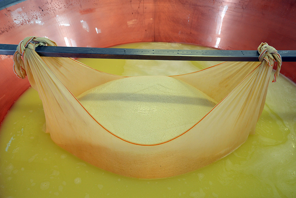 On our ridiculously overbooked reporting trip last summer, Toni Mazzaglia, owner of the tour company Taste Florence, convinced us to get up super early to watch authentic Parmigiano Reggiano being made at the Istituto Lazzaro Spallanzani, an agricultural school just outside Bologna. We might have been sleepy, but we were enthusiastic! For two hours, we marveled at the different stages the milk went through before it finally was shaped into rounds and ready for aging. And, of course, our visit was capped by a breakfast of fresh ricotta, as well as samples of 12-, 24-, and 36-month-old parmesan. Plus, just for fun, we washed it all down with some lambrusco, the local sparkling red wine. Yes, at breakfast. Thanks again to Toni for planning it and for translating. If you have a trip planned to Florence, take her food tour. And a few lucky Gastropod listeners can enter code gastropod18 to get $5 off per ticket. You won’t regret it!